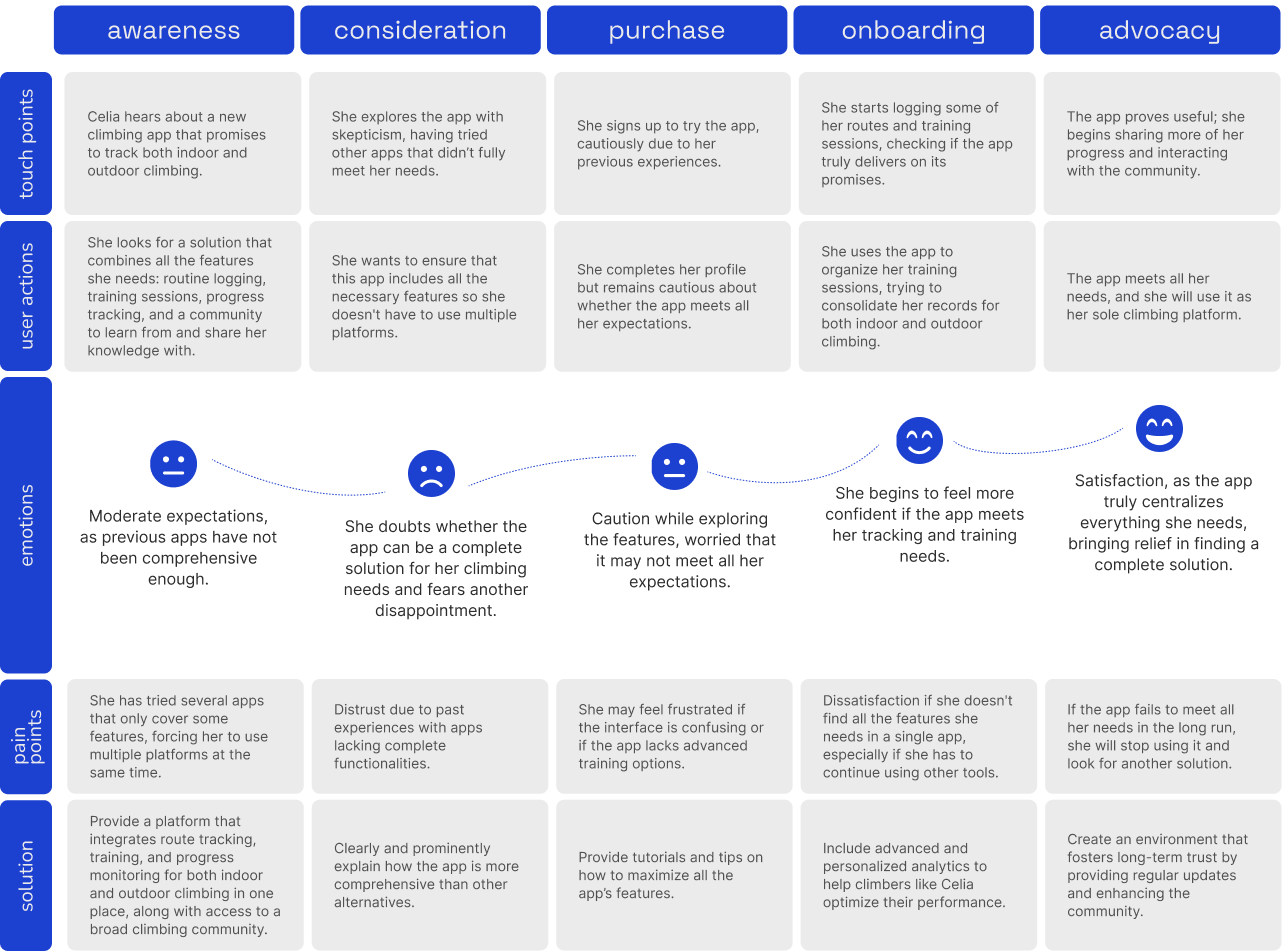 This combined approach provided a well-rounded perspective on user needs and helped me define key areas for improvement in climbing app experiences.