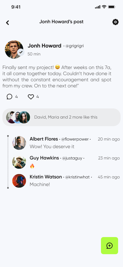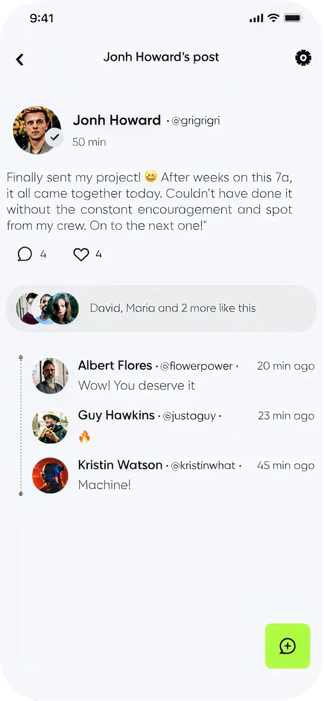 Features to share achievements and learn from others.
