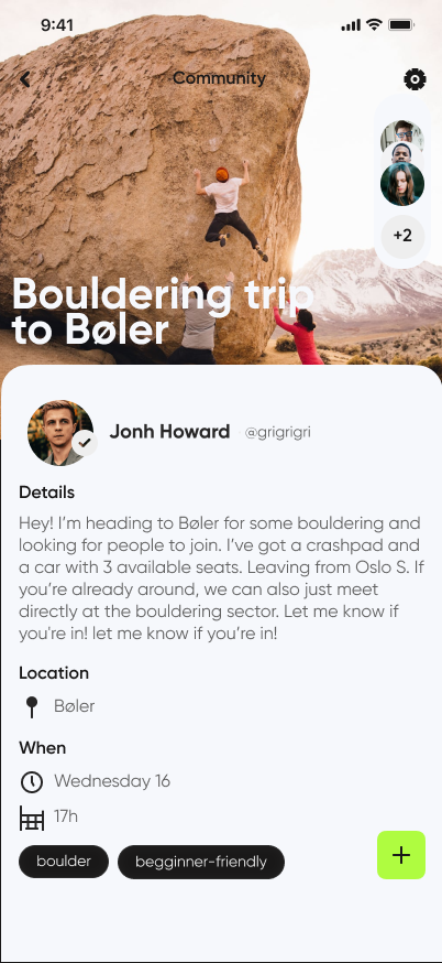 Many climbers look for a simple and safe way to find climbing partners, especially when in a new city or community, without relying on traditional social media.